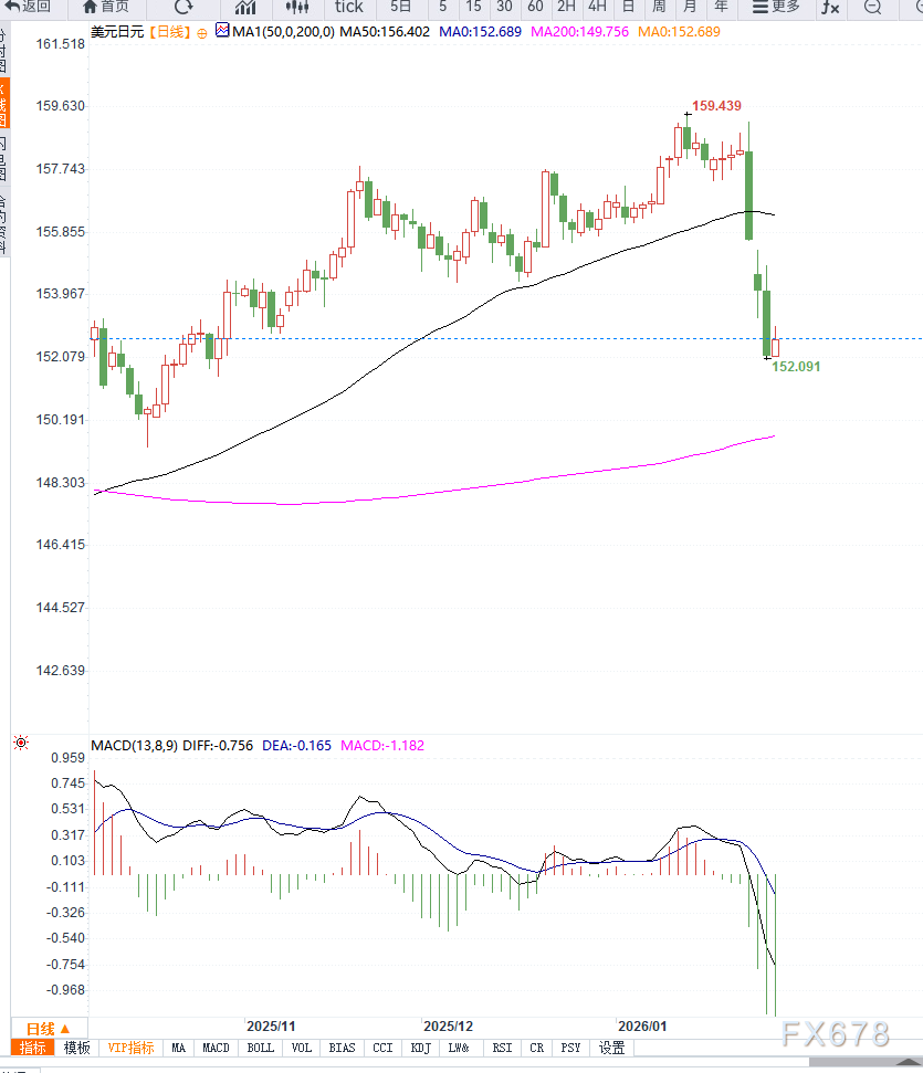 整体而言,美元兑日元当前处于趋势转弱后的验证阶段,短线存在超卖修复需求,但技术结构尚未支持明显反转。