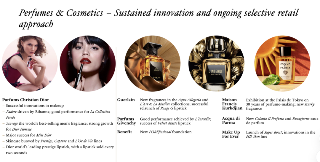 2023年时,财报提到纪梵希的香水系列持续成功;2024年则提到其散粉和香水实现了进一步增长;2025年虽未提到增长,但也提到其成功推出了最新版本的香水产品。