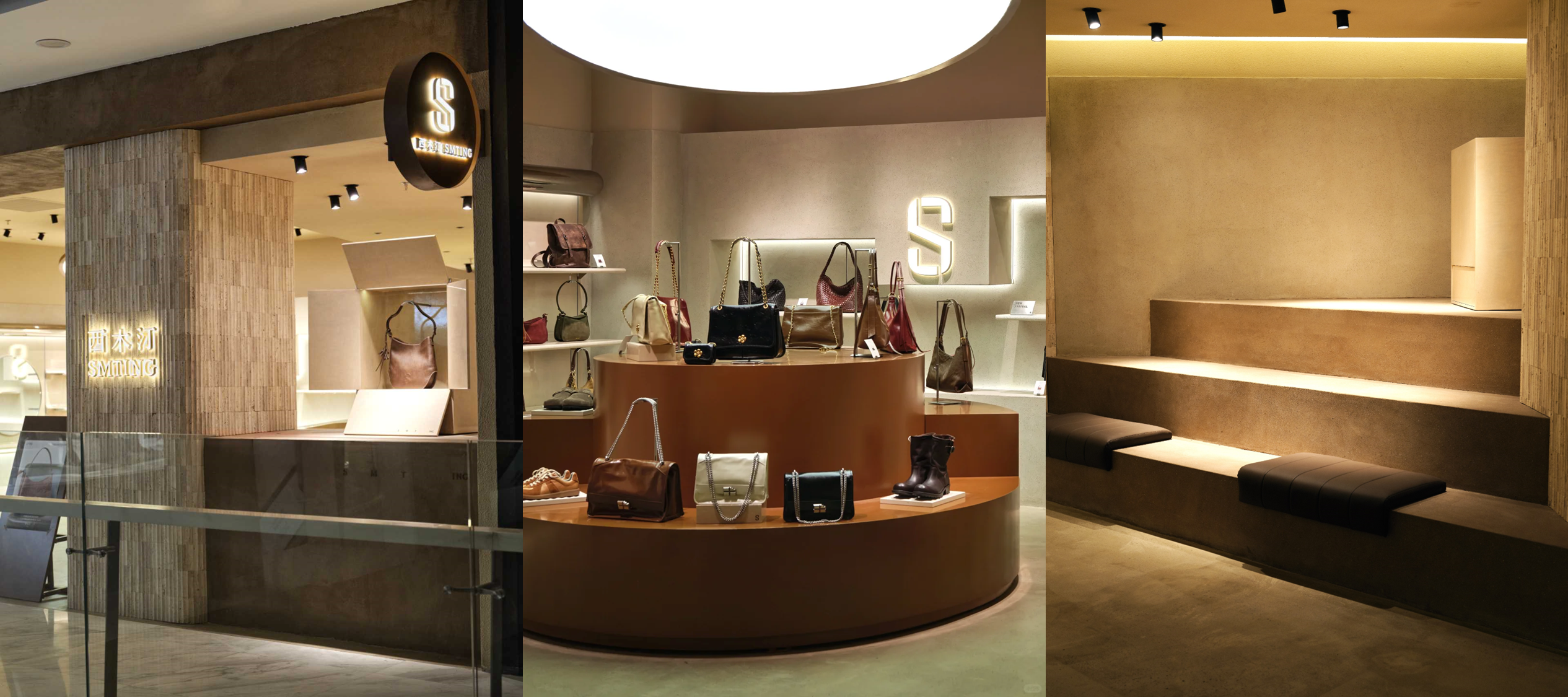 西木汀「心声剧场」作为西木汀进军一线城市的重要形象窗口,上海淮海百盛旗舰店在空间设计上摒弃了传统零售的密集陈列,转而探索“几何体块”与“光影氛围”的商业表达。店铺将“剧场”概念抽象化,通过三大核心视觉锚点,构建出层次丰富的体验动线: