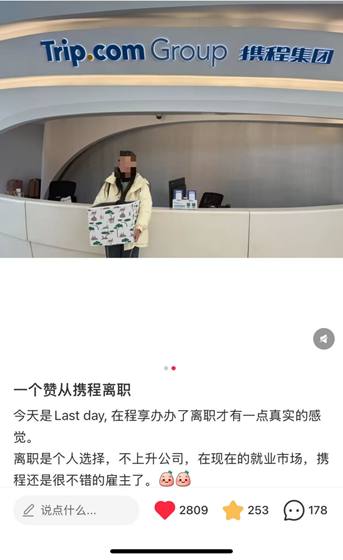 “离职是个人选择,不上升公司。在现在的就业市场里,携程还是非常不错的雇主。”
