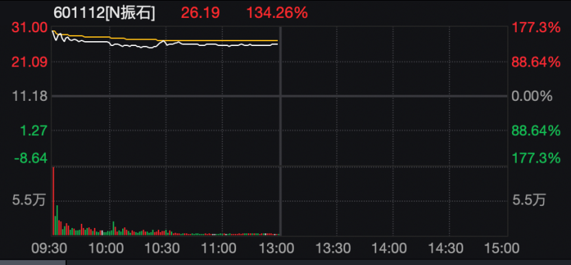 A股市场今天有一只新股上市,为振石股份,盘中涨幅一度超过170%,后有所收窄。