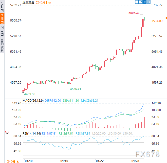 对黄金:提供了一个明确但力度有限的短期上涨理由(政治避险)。它为金价提供了支撑和事件驱动的交易机会,不过,黄金更大的行情需要结合“全球性风险事件”。周四亚市时段,现货黄金震荡走强,这已是金价连续第九个交易日走强,现交投于每盎司5550美元附近,日内涨幅约2.5%,此前一度触及5596.33美元/盎司的历史新高。