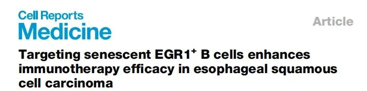 [1] ZHOU P, ZHANG Y, ZHANG H, et al. Targeting senescentEGR1+B cells enhances immunotherapy efficacy in esophageal squamous cell carcinoma[J]. Cell Reports Medicine, 2026, 7: 102532. DOI: https://doi.org/10.1016/j.xcrm.2025.102532.