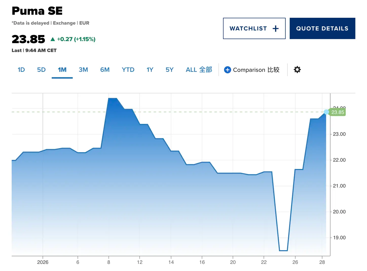 彪马则受到溢价并购消息的提振,股价单日一度上涨20%。截至今天,总体涨幅约10%。