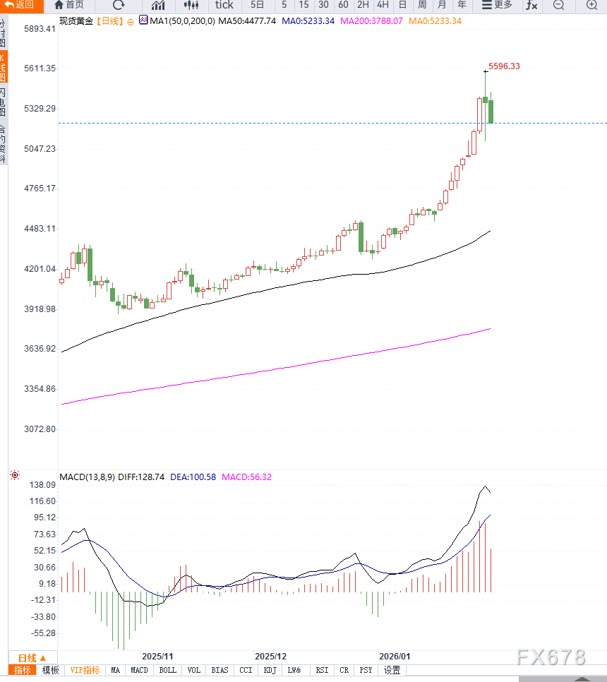 整体来看,黄金日线趋势尚未发生反转,但已从“加速上涨阶段”转入“高位震荡消化阶段”。