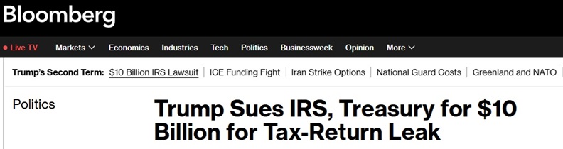 FX168财经报社(亚太)讯 美国总统特朗普(Donald Trump)已向联邦法院提起诉讼,起诉美国财政部和国税局(IRS),指控其在他的首个总统任期内非法泄露其个人税务申报信息,并要求至少100亿美元的赔偿。