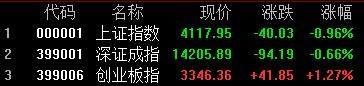 1月30日,A股三大指数涨跌不一,截至收盘,沪指跌0.96%报4117点,深证成指跌0.66%,创业板指涨1.27%。