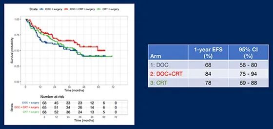 Verheij博士总结道:“从依从性和毒性角度来看,单纯放化疗组(第3组)表现最佳,而从生存率和病理完全缓解率来看,化疗联合放化疗组(第2组)更具优势。”