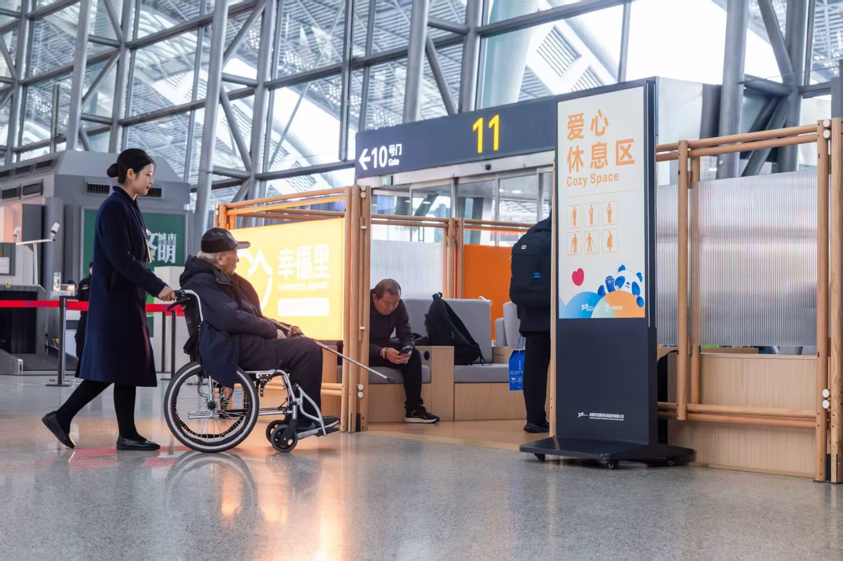双流机场创新推出“分类服务手环”,让急到、首乘、特殊旅客得到精准分类,从而获得有针对性的及时帮扶;对老年、残障旅客,提供从值机到登机的“一对一”全流程专属服务。天府机场着力优化大交通衔接,通过改造网约车上客区流线、精细调度停车楼资源、与地铁高铁共享客流数据并建立应急疏运机制,确保旅客抵离高效顺畅。服务上,天府机场内设置了集中休息区,过夜旅客可提前值机、行李托运、领取免费过夜用品等。
