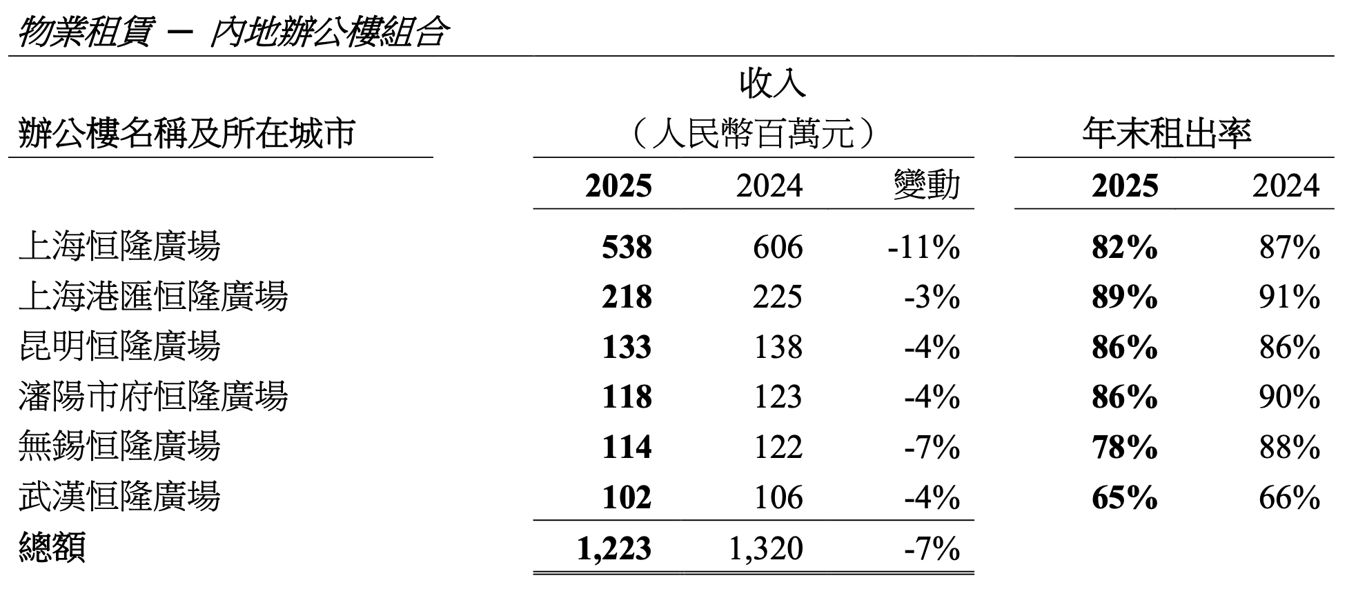 尽管整体租赁收入略有下滑,但恒隆通过优化租户组合和差异化布局,内地商场表现稳健,而办公楼市场则面临周期性压力。