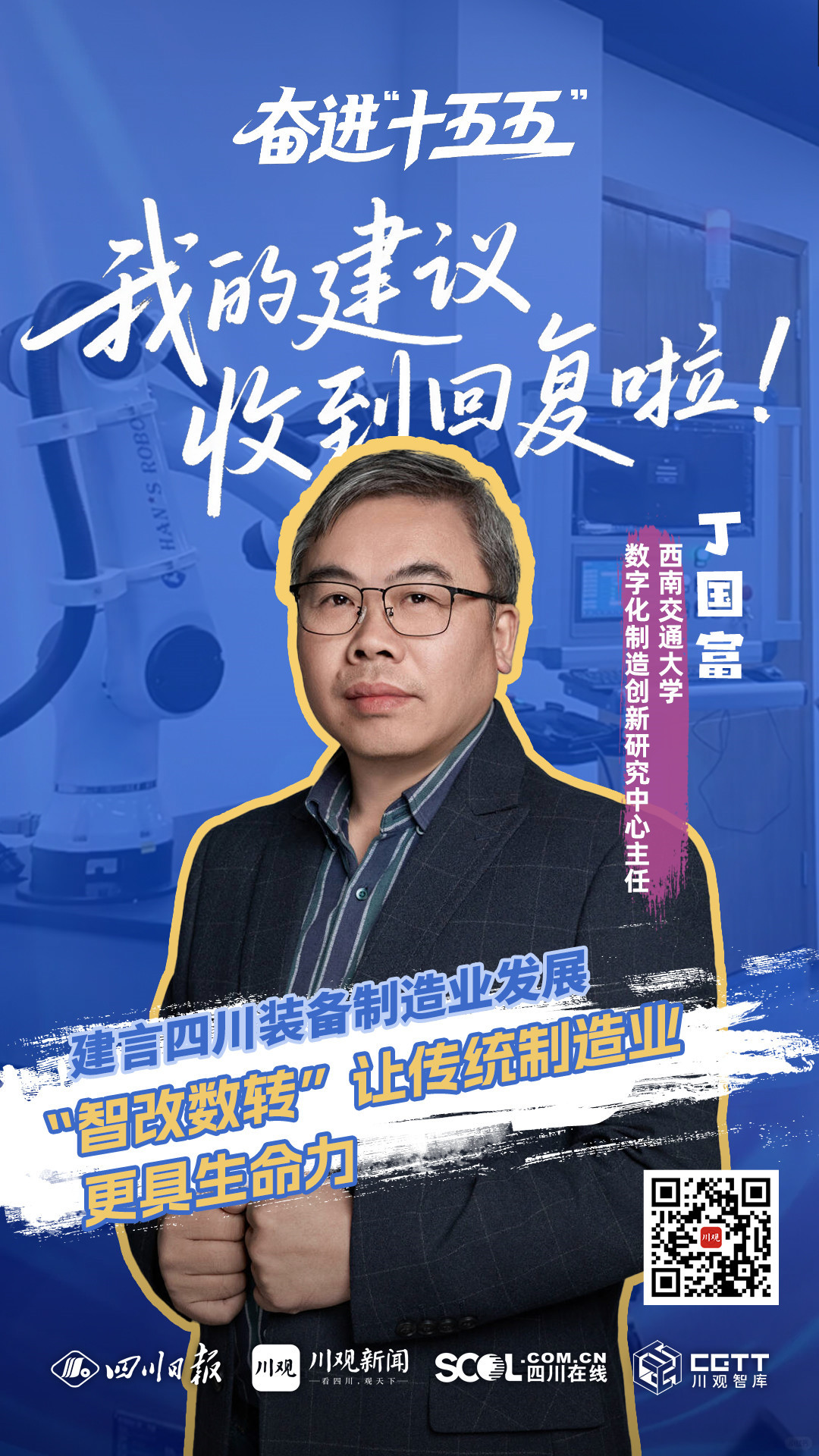 “数字孪生”是装备制造业“智改数转”的关键一招,而装备制造业又是经济发展的“压舱石”。“十五五”期间,四川如何推动装备制造业高质量发展?日前,深耕行业多年的丁国富向省发展改革委提交了针对性建议。