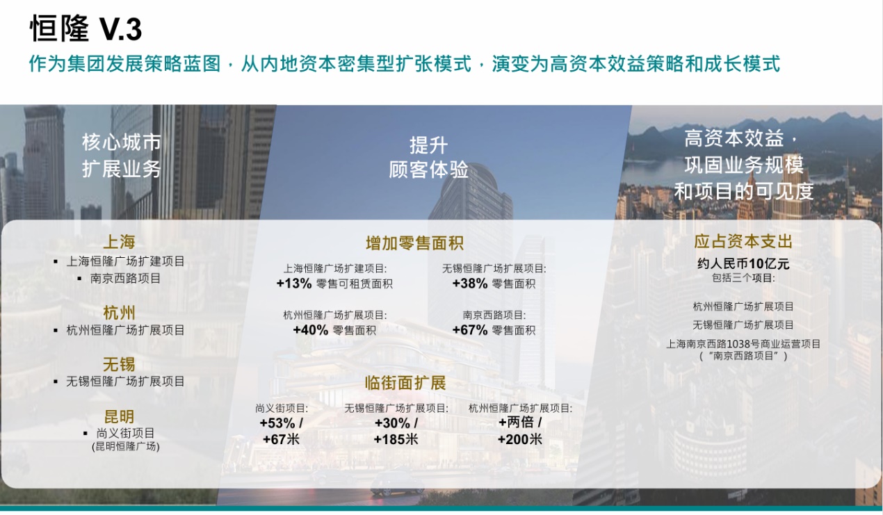 “V.3”策略是恒隆聚焦核心项目的精耕细作,面对市场饱和、竞争加剧及拿地成本高企的新环境,恒隆在“V.2”策略成功基础上进行了升级。