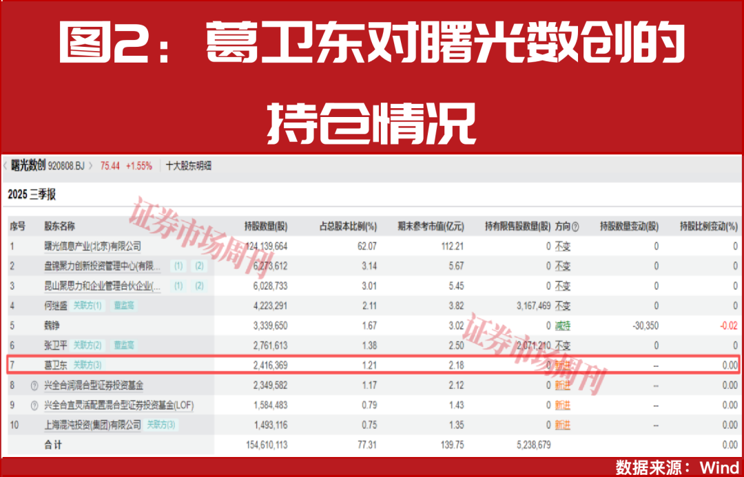 此外,葛卫东还在2025年三季度末以新进姿态成为了液冷概念股曙光数创的第七大股东(见图2)。