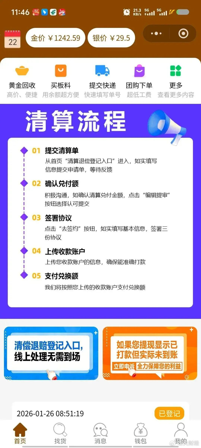 1月中旬以来,金价暴涨,获利套现的挤兑压力陡增,杰我睿应声爆雷,岂是意外?百亿资金黑洞,十几万客户被套,相当惨烈。
