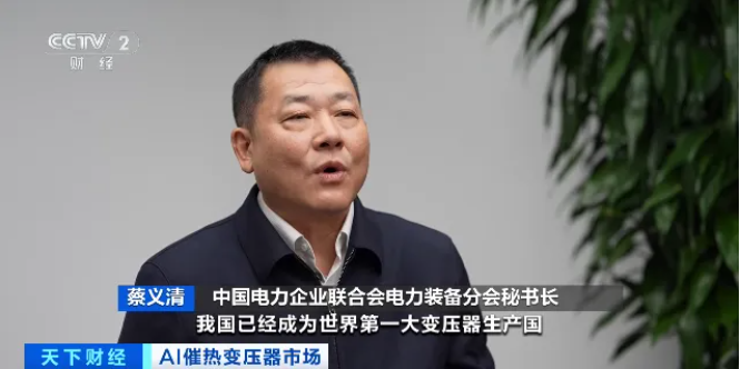 中国电力企业联合会电力装备分会秘书长 蔡义清:我国已经成为世界第一大变压器生产国,建成了全球最完备的变压器生产体系,具有全产业链自主可控的硬实力,产能约占全球60%。