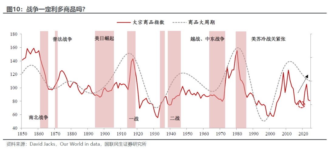 首先,世界大战级别,供应链全面紊乱,波及范围广、军需规模大,对商品往往是利好;