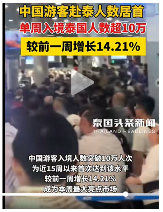 1月1日至25日,泰国累计接待中国游客超30万人次,其中1月19日至25日单周突破10万人次大关,周环比增长14.21%,创近15周以来新高。