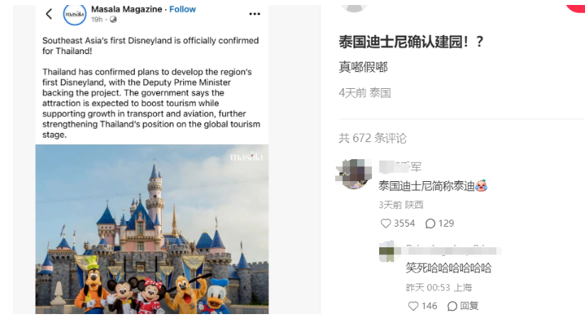 更值得期待的是,泰国有望建东南亚首个迪士尼乐园,不少网友调侃其简称为“泰迪”。