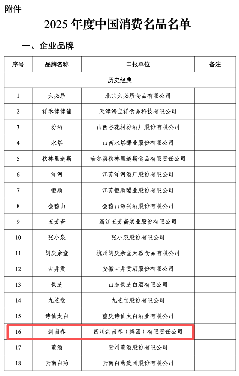 2月3日,川观新闻记者从工业和信息化部网站获悉,近日,2025年度中国消费名品名单正式公布。四川剑南春、康弘、彩虹等企业品牌和东坡泡菜、自贡彩灯、川南竹浆纸等区域品牌成功入选,涉及轻工、食品、医药等消费品领域。