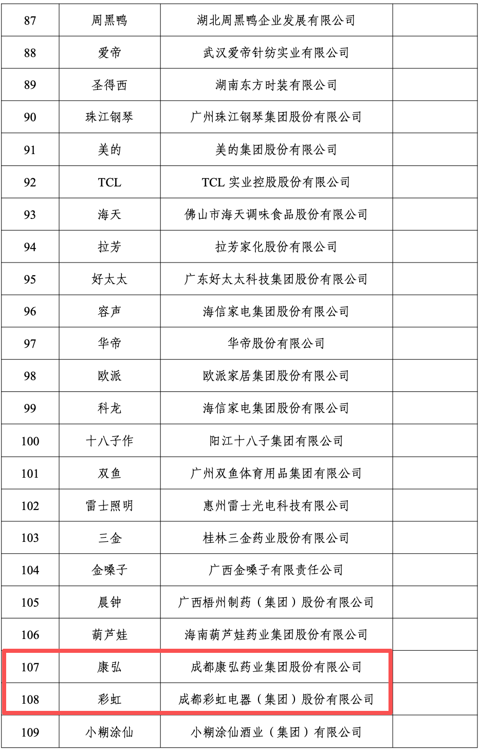 此次入选的四川品牌,涵盖历史经典、时代优品、潮流新锐等领域,展示出四川消费品产业的深厚底蕴和强劲实力。比如,企业品牌中,剑南春入选历史经典名单,是历史悠久、至今仍具有影响力的经典品牌。康弘、彩虹入选时代优品名单,属于美誉度高,在群众中影响深远的优质品牌。区域品牌中,东坡泡菜、自贡彩灯、川南竹浆纸等属于产业特色鲜明、地域标识明显、行业认可度较高的地方优势品牌。