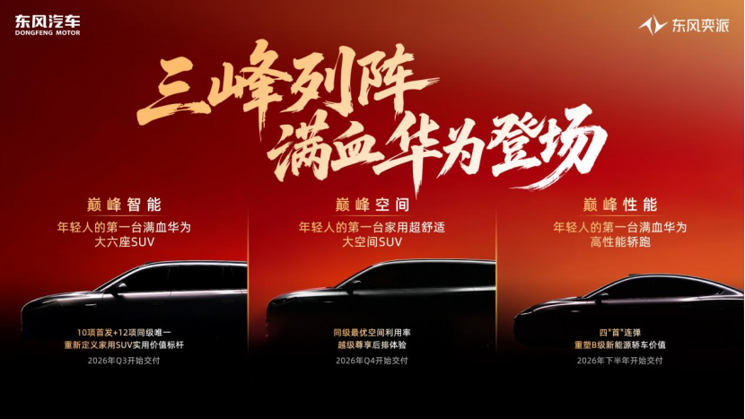 技术最终服务于产品。2026年,东风奕派计划推出的8款新车中,最具战略意义的是以“巅峰智能、巅峰空间、巅峰性能”为标签的三款“满血华为”战略车型,均明确瞄准年轻用户的第一台车需求。