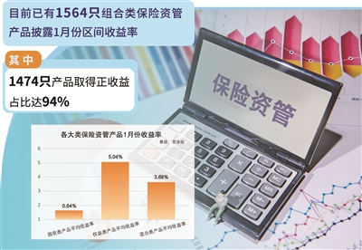 近日,1月份组合类保险资管产品业绩陆续出炉。Wind资讯数据显示,截至发稿,已有1564只组合类保险资管产品披露1月份区间收益率(以下简称“收益率”),上述产品的收益率中位数为0.53%,平均收益率为1.82%,共有1474只产品取得正收益,占比94%。