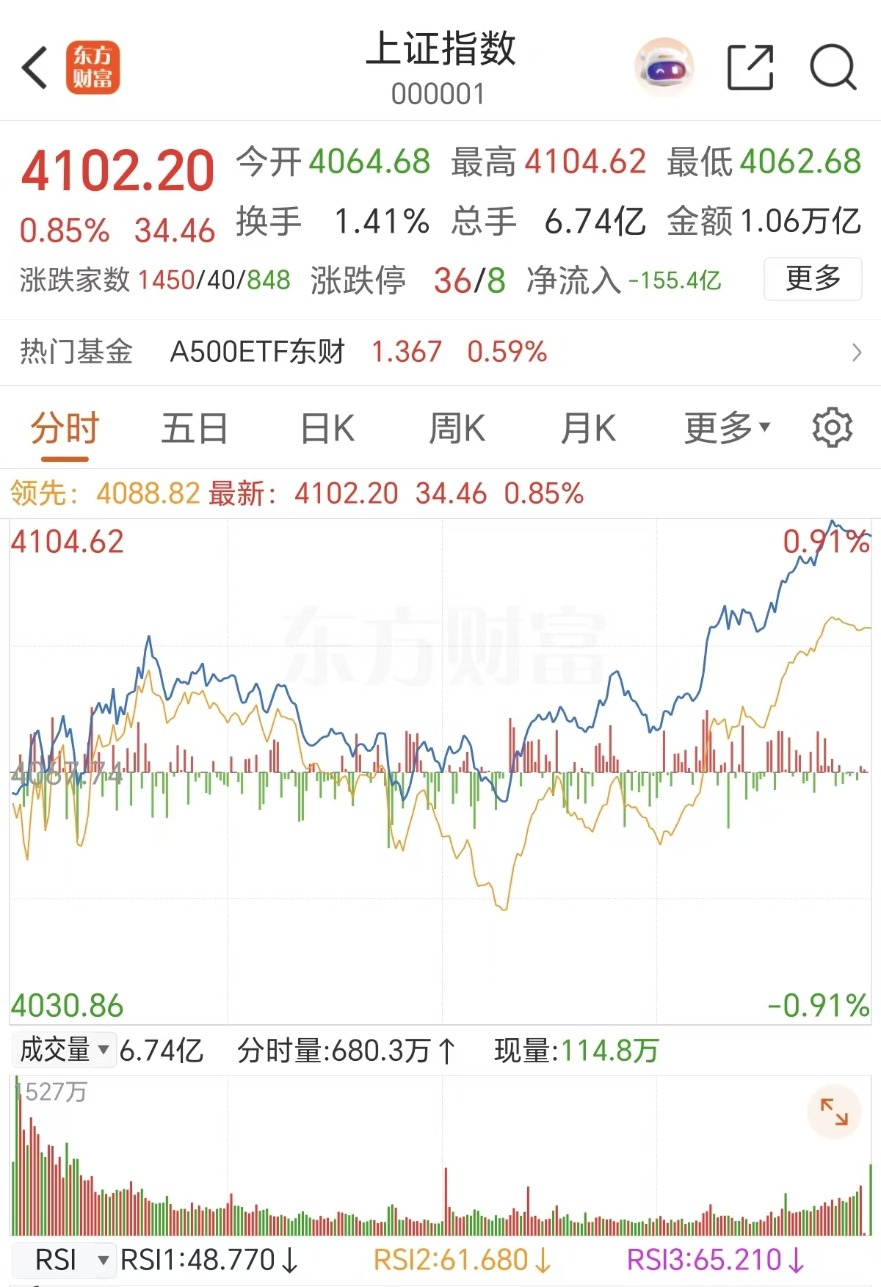 周三(2月4日)市场探底回升,沪指重返4100点,深成指翻红,此前一度跌超1%,创业板指午后跌幅收窄,两市成交额2.48万亿,较上一个交易日缩量633亿。截至收盘,沪指涨0.85%,深成指涨0.21%,创业板指跌0.4%。