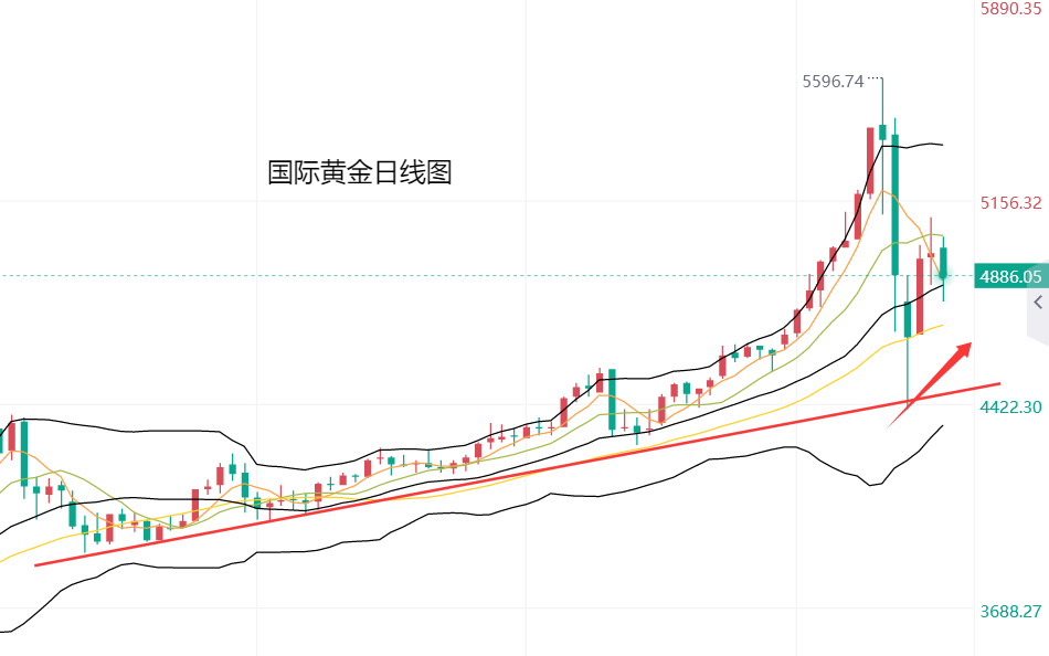 黄金在周一刷新近一个月新低4402美元后,走势触底反弹,当天一度回升超过400美元,这一方面因黄金在下跌过程中,一直在吸引逢低买盘介入,此前金价已多次出现200到300美元的阶段反弹,其次则是市场避险情绪再度升温,如俄乌和谈时间推迟,美国政府停摆的风险再起,以及美伊紧张局势可能再度升级等,这支撑黄金在周二以及周三继续冲高,一度重新站上5000美元整数位置。