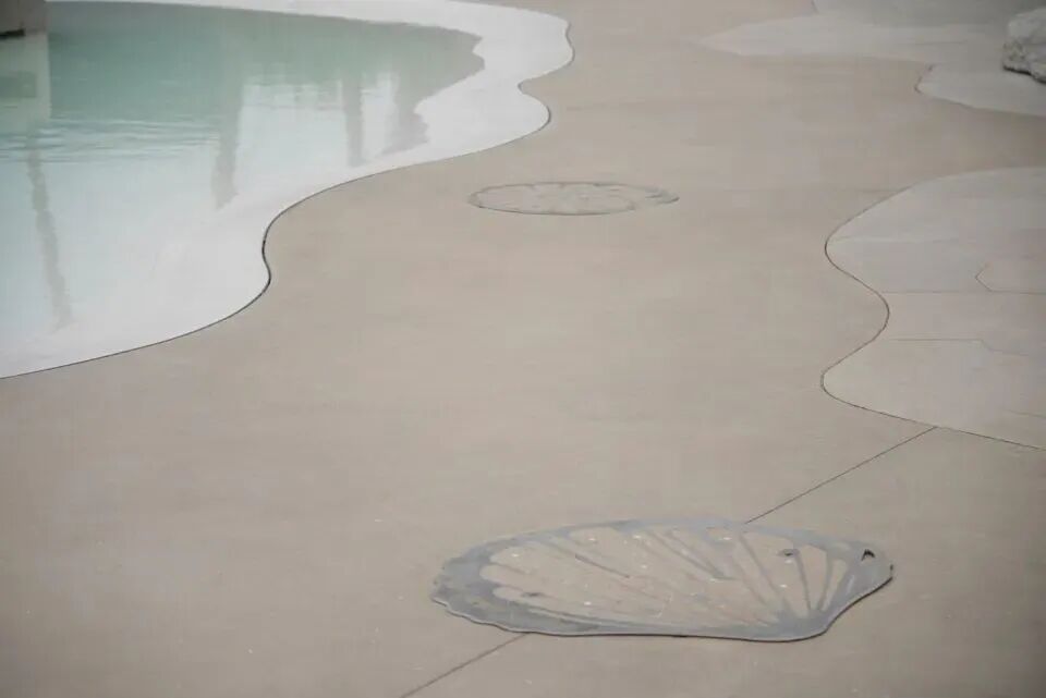 在设计细节方面,万象滨海购物村也有不少亮点,如仿造沙滩海石的地面、贝壳造型的装饰井盖等等。