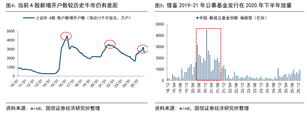 当前持股过节或为上策。1月中旬以来A股横盘震荡,最近一周波动加大,出于对海外风险等不确定性事件的担忧,投资者对持股还是持币过节存在分歧。从历史数据看,春节前后一周A股上涨概率均大。同时,海外风险或相对可控,一是本周中美元首再次通话,双方同意加强对话沟通,拓展务实合作;二是沃什并非一个典型的鹰派人士,美国中期选举和联储换届背景下,美元流动性宽松预期仍有望回归。国内宏观政策基调也还延续积极,2月6日国务院第十次会议上,李强总理指出宏观政策要靠前发力,财政资金尽可能提前安排,加强资金下达和项目建设的协同配合,使政策尽快落地见效。因此,我们认为当前仍处牛市氛围中,历史上牛市春季行情期间指数往往具备20%左右的涨幅空间。而2025/12/17以来的上证指数的最大涨幅为9.8%,与历史相比上涨时空差距仍较大,本轮春季行情或仍有进一步演绎的空间,短期持股过节策略或相对更优。从中长期的视角看,未来随着宏微观基本面的修复由点到面扩散,配合居民资金入市,2026年A股牛市有望走向后半场。