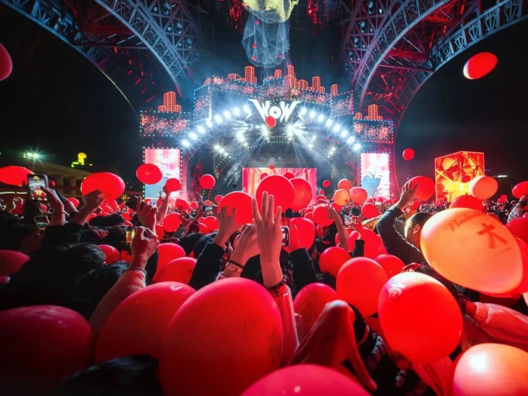 吸客的逻辑,也随之改变。过山车、跳楼机、大摆锤等只是“基础引力”,更多带动客流的,是那些“错过就没有”的限定体验:节日限定演出、花车巡游、跨年烟花、无人机光影秀、电音节、夜场活动、古风市集、新春庙会、长桌宴、主题灯会……