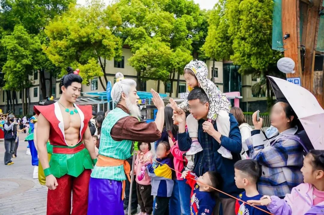 其次是社交属性被大幅强化。大量场景在设计之初就考虑“出片效果”,国风街区、赛博朋克灯光、巨型装置和巡游演艺,本质都是可被拍摄、可被传播的视觉内容。NPC主动互动、变装入园、实景还原,游客成为内容共创者,甚至是传播的主力。