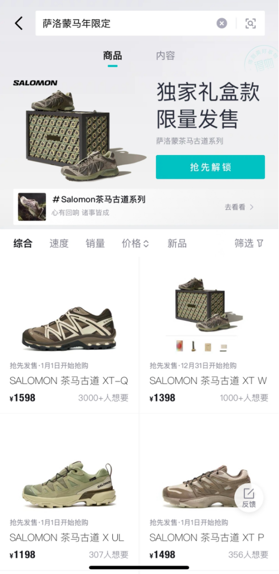 近日,法国专业运动户外品牌Salomon萨洛蒙官方入驻得物App,并在得物App领先于全网首发马年限定系列新品礼盒。新品开售后秒售罄,7天内销量突破百万,并在得物App社区引发超50万年轻用户互动。
