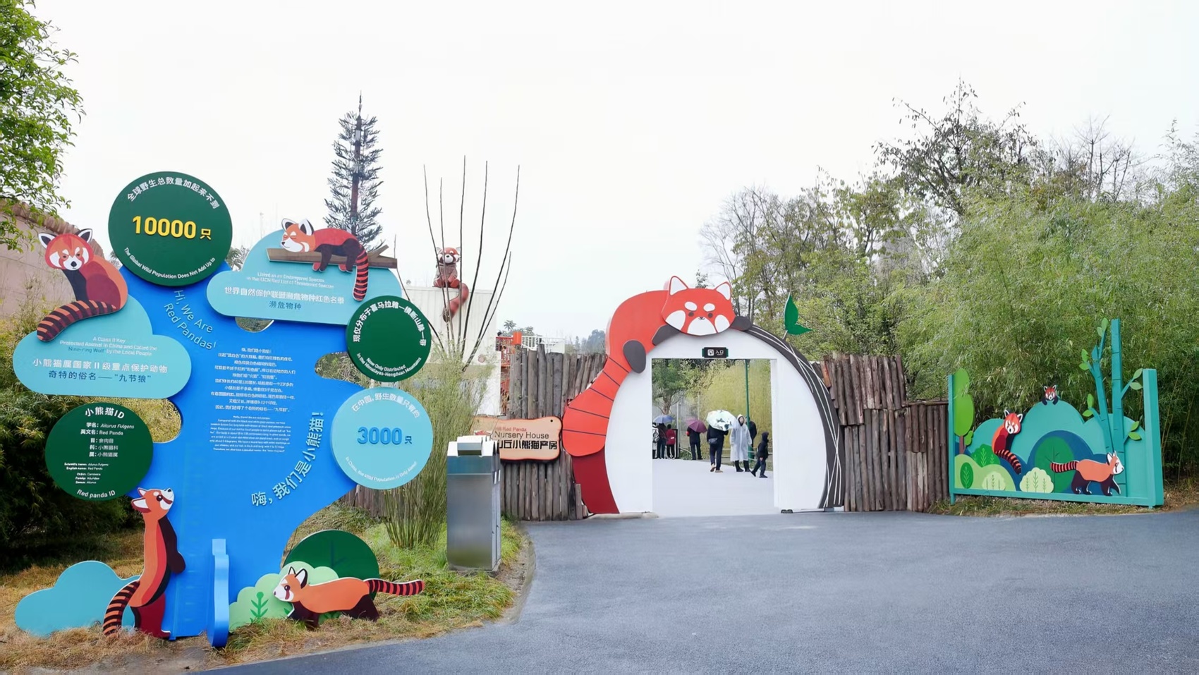 其中,生态放养区分为4个独立活动场,以自然展示为核心特色,展示区域达12000平方米,充分利用原有坡地,扩大小熊猫活动空间、降低饲养密度,进一步提升动物生存环境。