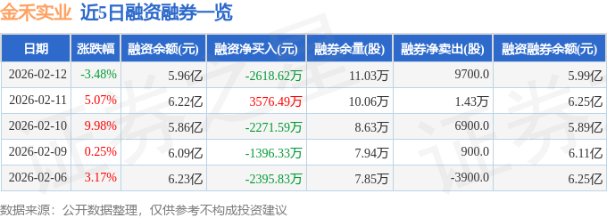 证券之星消息,截至2026年2月12日收盘,金禾实业(002597)报收于26.59元,下跌3.48%,换手率3.43%,成交量19.46万手,成交额5.22亿元。