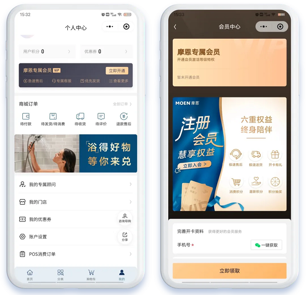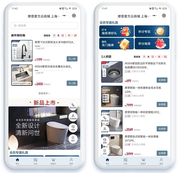 在此背景下,卫浴行业领军品牌摩恩率先破局,携手微盟启动数字化转型。摩恩小程序业务负责人Jackson表示:“在行业没有成熟样板的情况下,我们与微盟摸着石头过河,以共创模式找到了适合卫浴行业的数字化路径,数字化不是取代线下,而是让数字化为线下渠道赋能、为用户体验加分。”