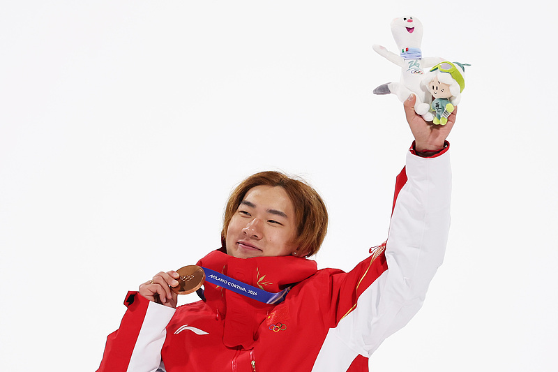 当地时间2月7日,苏翊明在单板滑雪男子大跳台决赛中获得一枚铜牌,身着李宁领奖服为中国军团赢得了在本届冬奥会上的首枚奖牌。