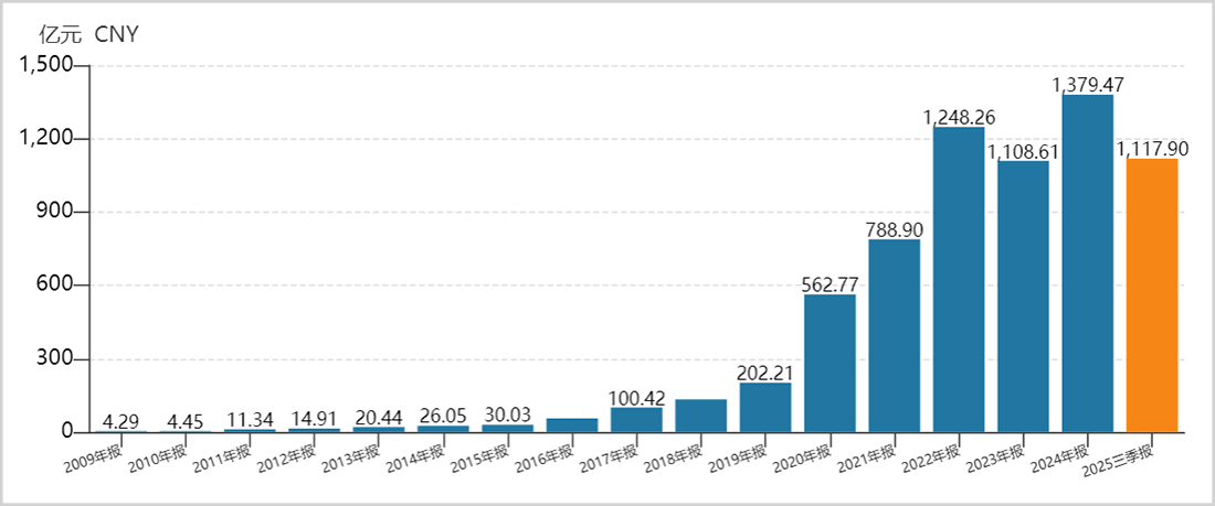 2014—2024年,牧原股份营业收入从26亿元攀升至1397.47亿元,年复合增长率接近50%。归母净利润从2014年的0.8亿元增长至2025年的150亿元左右,年复合增速达68.8%。在此期间,除2023年外,无论猪价是否处于景气周期,公司均能保持正盈利。