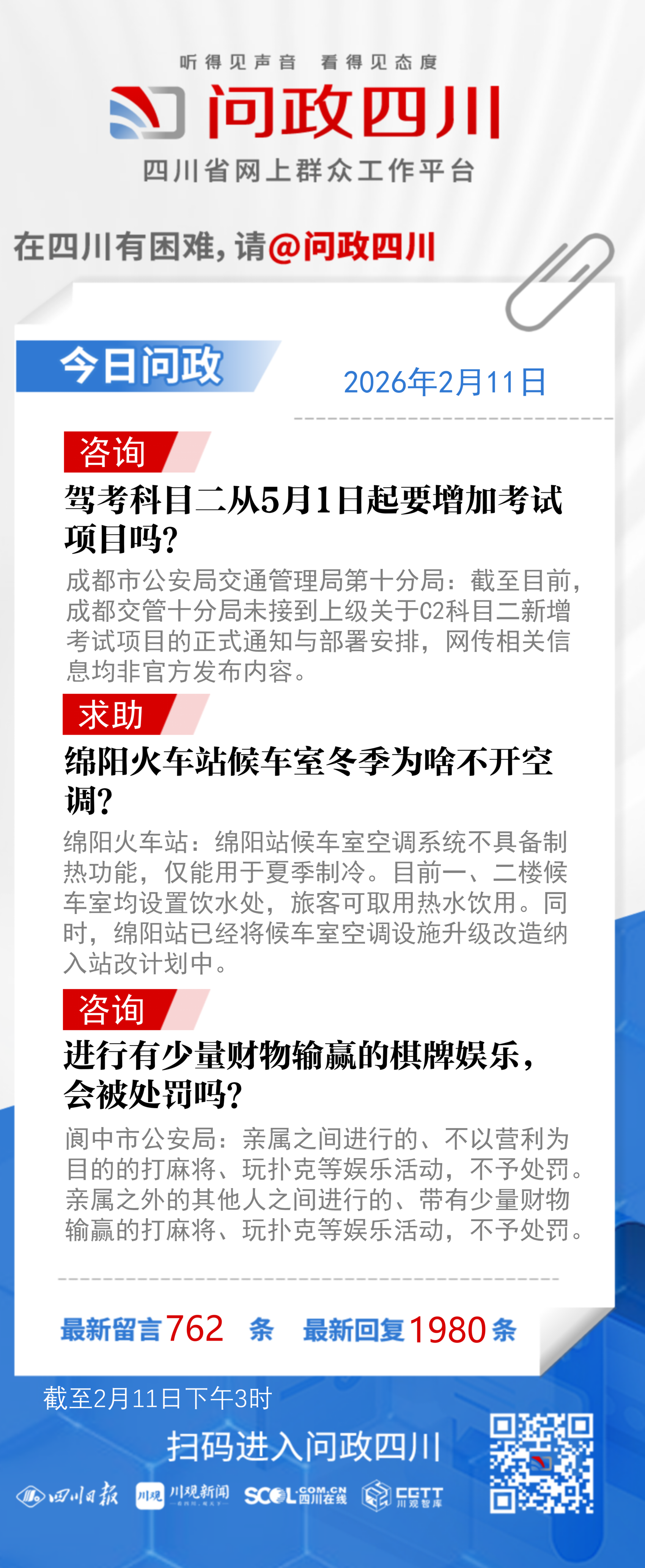 问政四川网友提问:网上传言C2驾考中的科目二从2026年5月1日起会增加考试项目,但是没有看到官方发布相关消息,想咨询会增加考试项目吗?