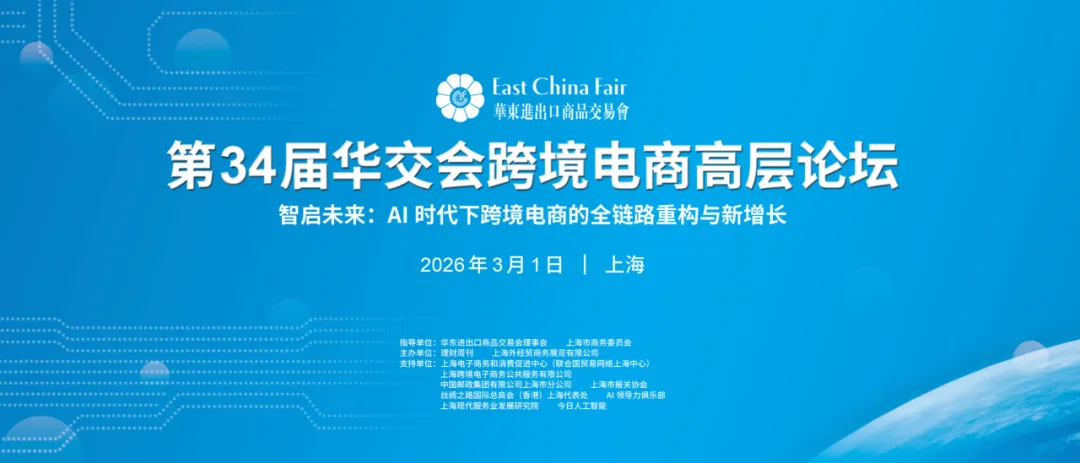 第34届华东进出口商品交易会即将于2026年3月1日至4日在上海新国际博览中心隆重举办。作为本届展会的重头戏之一,第34届华交会跨境电商高层论坛将于3月1日下午先行登场,拉开华交会精彩序幕。