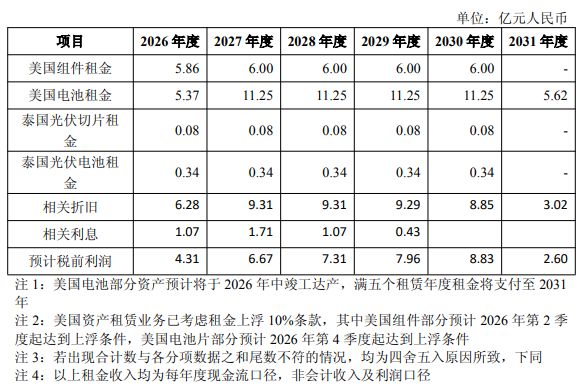 按年度租金收入模拟,预计上述资产租赁将在2026年-2030年产生税前利润分别为4.31亿元、6.67亿元、7.31亿元、7.96亿元、8.83亿元,共计35.08亿元。