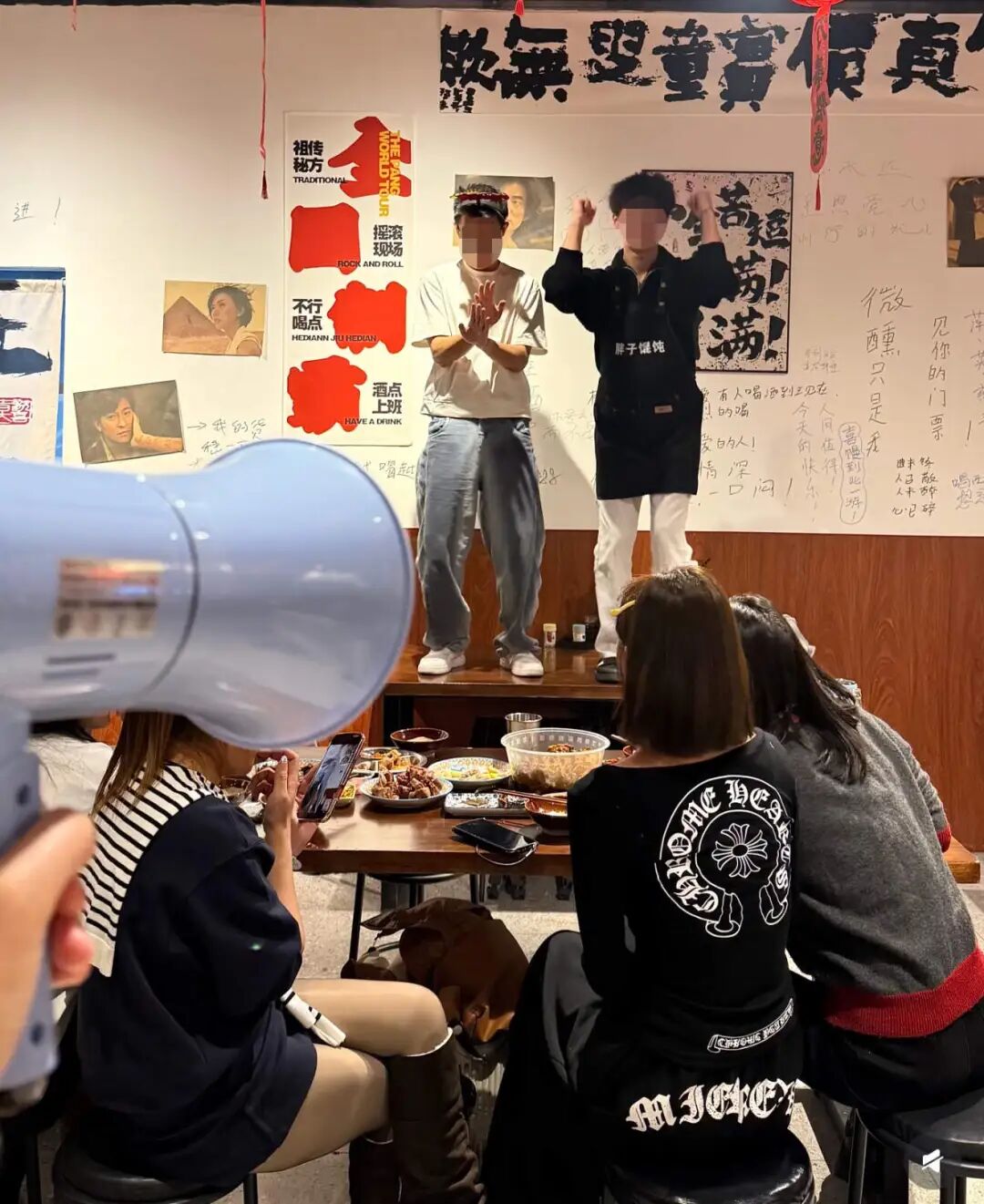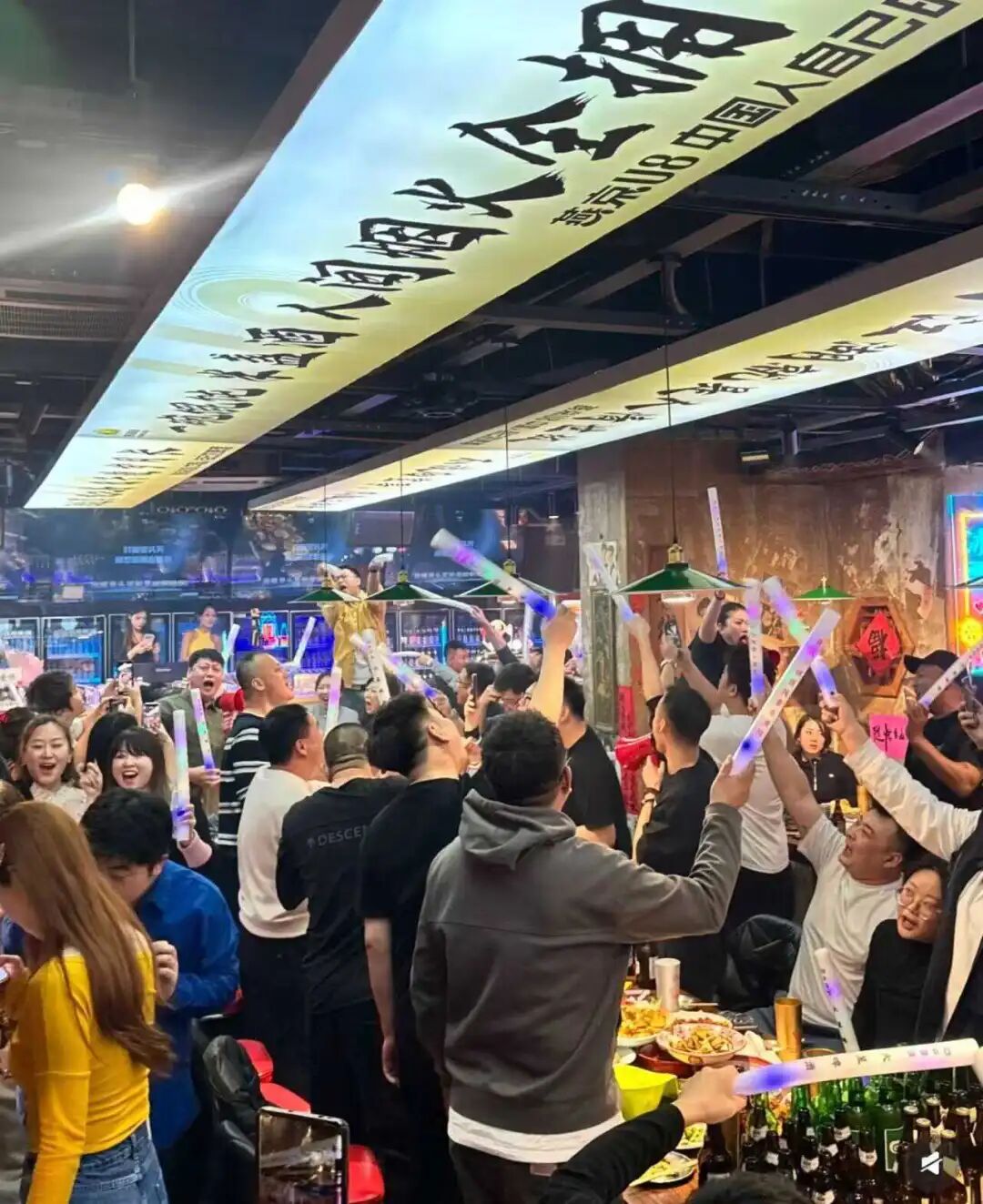 到店的顾客基本是或年轻、或中年的男女,吃着十几块一碗的馄饨,喝着几块钱一瓶的啤酒,大声和旁边素不相识的人合唱,这种热闹既不精致,也不体面,更像是某种失意情绪的出口。