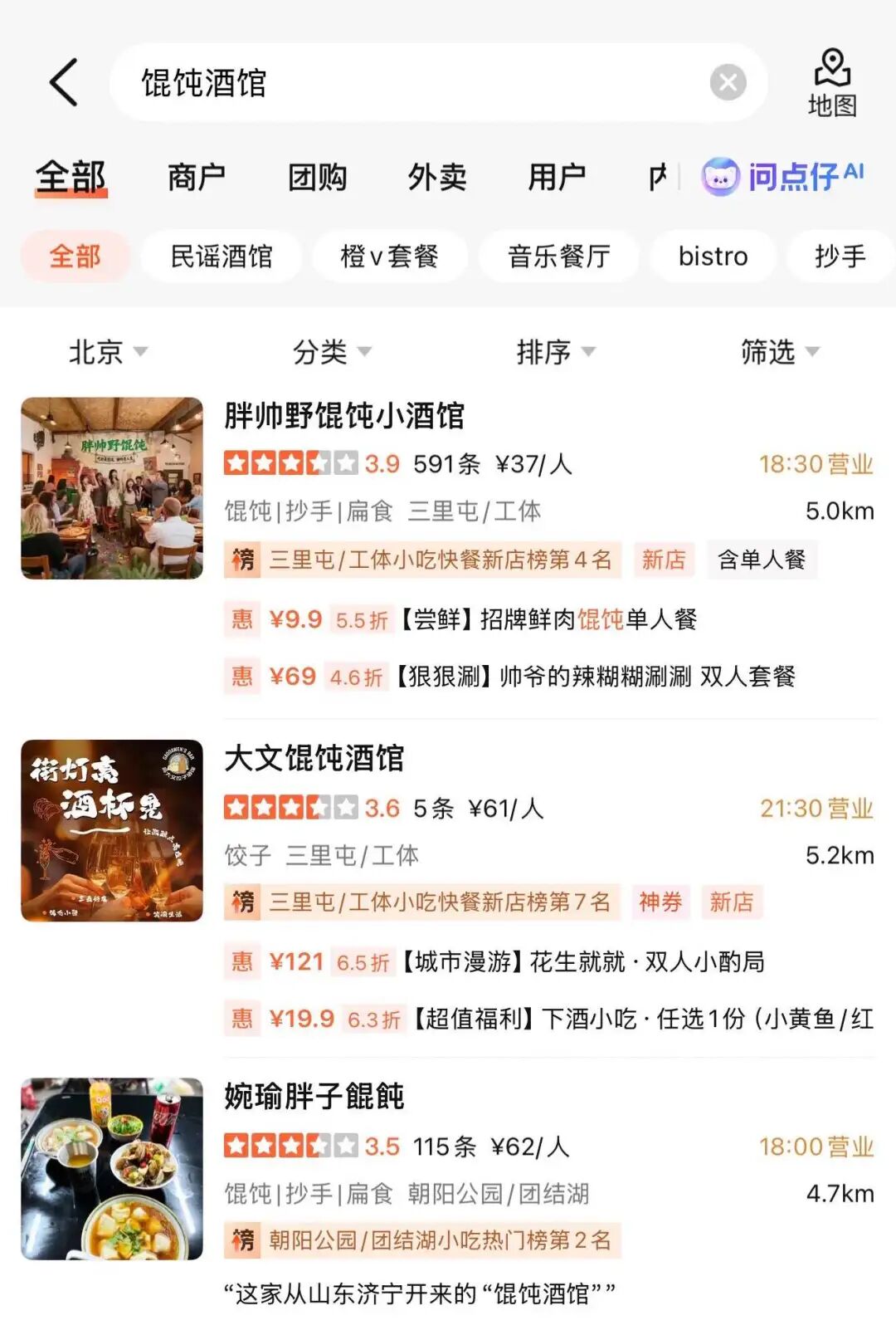 大多数的馄饨酒馆,店里根本没有不含酒的团购套餐。网友发帖,这类门店夜间酒水占营业额70%左右,馄饨只占20%,剩下的是小吃、零食等补充品类。