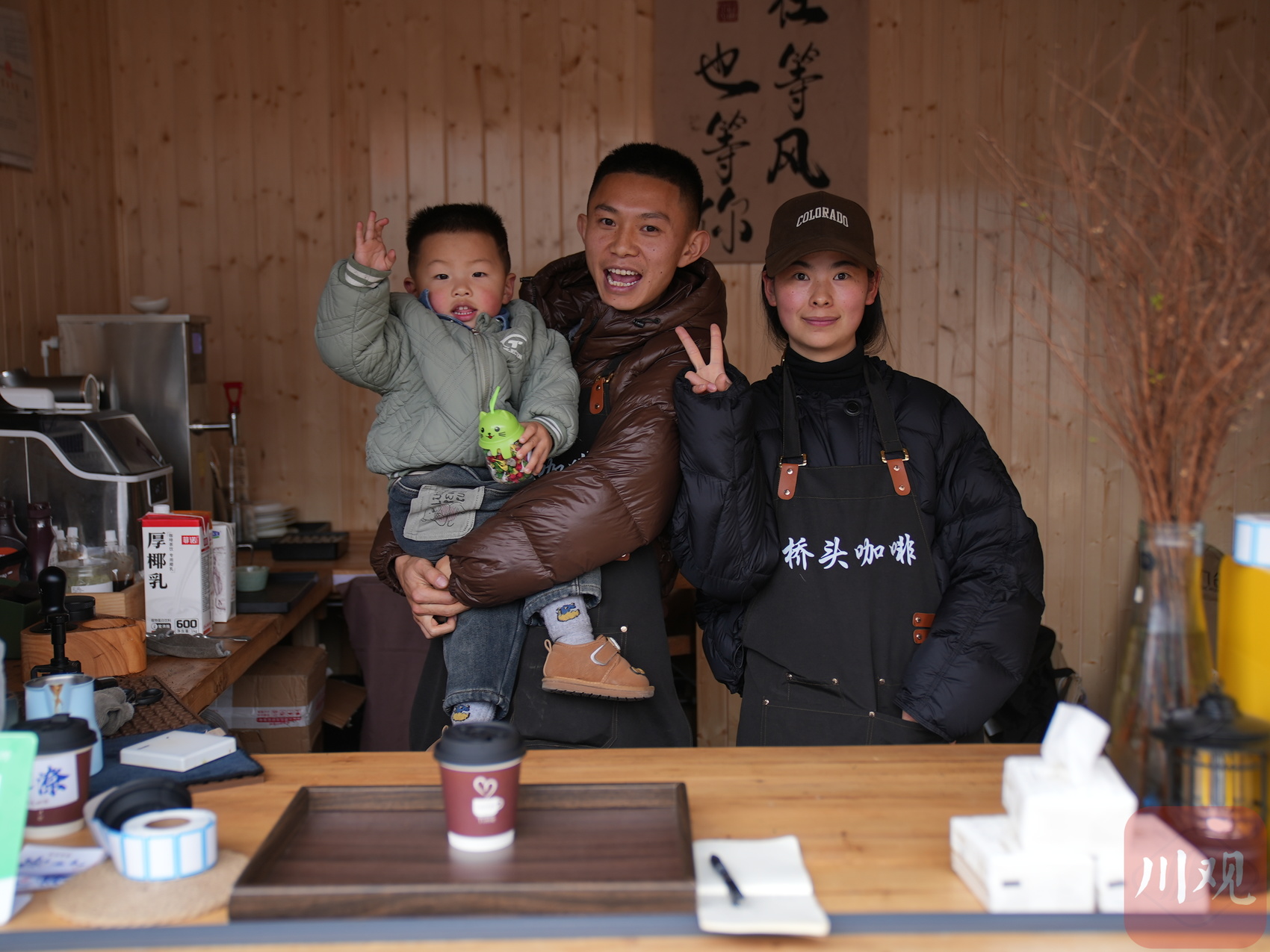 “桥头咖啡”王松涛一家三口。韦维 摄