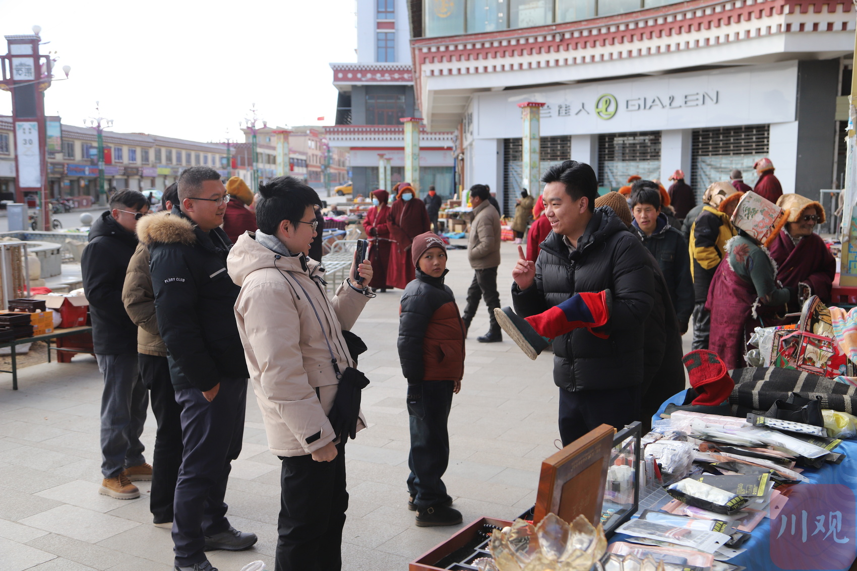 闹热的声音从县城喷泉广场传来。春节和藏历新年将至,石渠县举办年货购物节活动,政府补贴20%、商家让利10%,30%的优惠力度吸引了大批农牧民赶来置办年货。