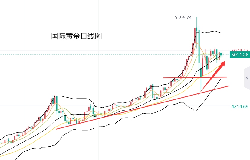 从之后的走势看,上周五亚盘盘中,黄金反弹4997美元遇阻,回落4944美元企稳,欧盘开盘后,黄金反弹4989美元遇阻,回落4934美元企稳,此后黄金震荡回升,美盘盘中向上突破5000美元整数位置,涨至5045美元遇阻回落,收盘前又涨至5046美元遇阻;本周一开盘,黄金反弹5032美元遇阻,回落5000美元企稳,再度反弹5032美元遇阻,此后金价震荡回落,跌至4965美元企稳反弹,目前交投于5008美元。总体来看,黄金回落4930美元支撑附近企稳反弹,走势基本符合我们的预期。
