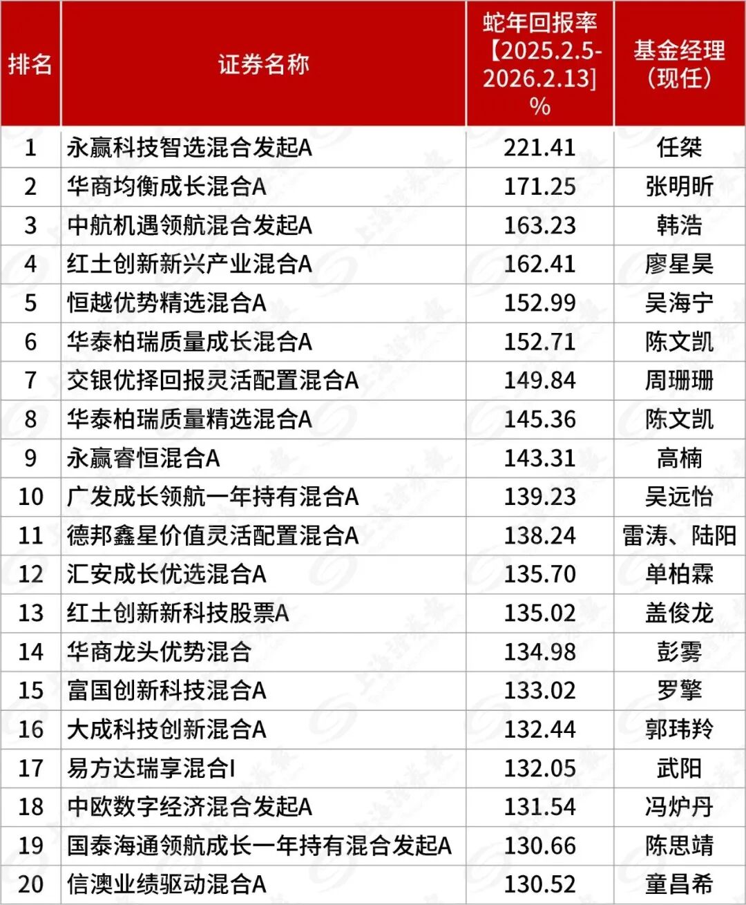 最高收益率221.41%!蛇年基金业绩谁最强?