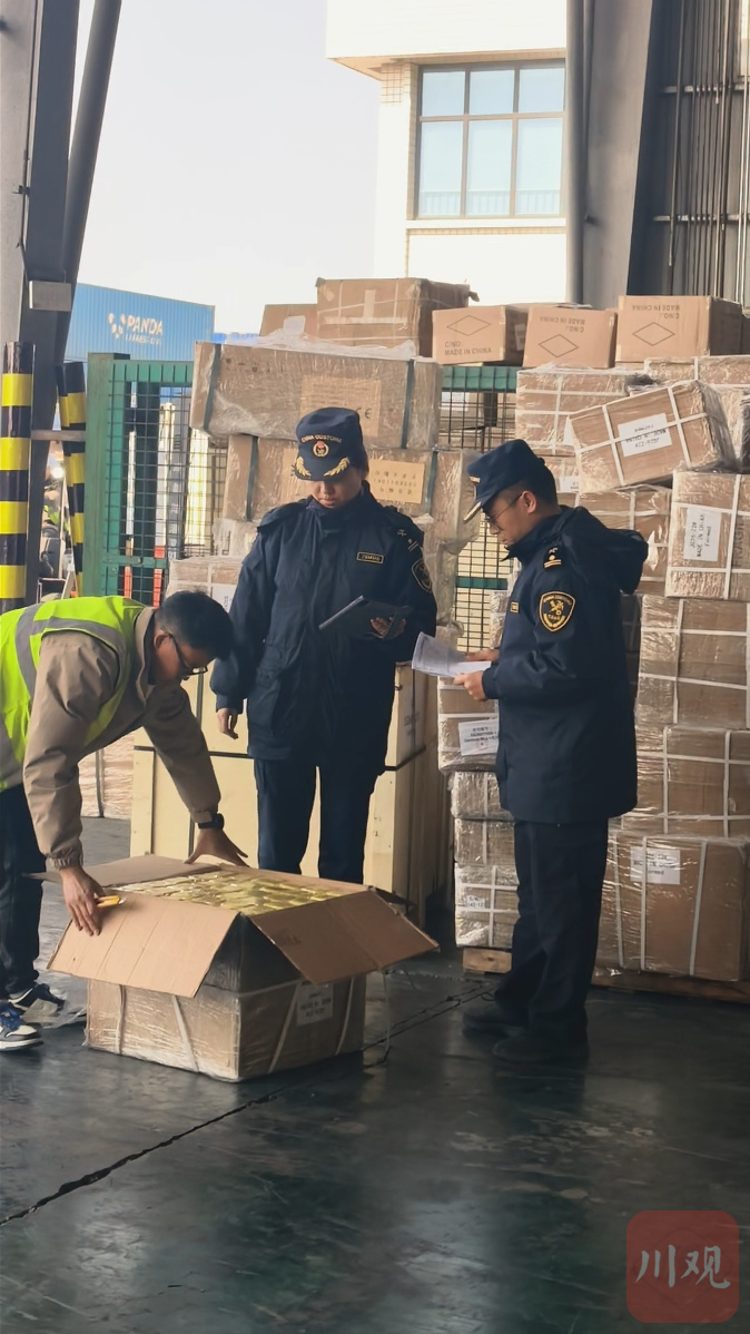 通关环节同样高效有序。当天,成都海关所属青白江海关两名关员打开一个集装箱,核对商品品名、规格等,“春节期间照常进行审单、查验,推行‘提前申报’‘无纸化通关’,实现‘即验即放’,全力保障货物顺畅通关。”一名关员说。