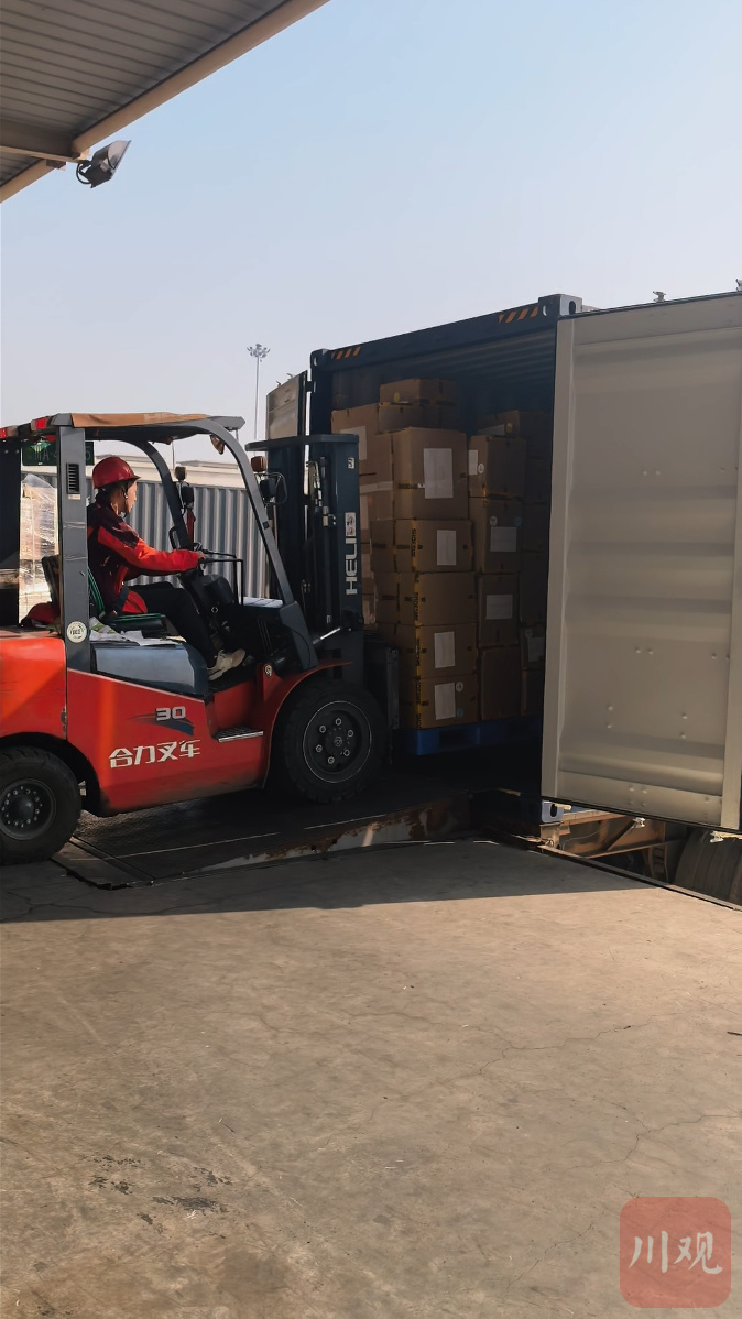 “开始装箱!”2月11日上午,记者来到成都国际铁路港综保区外的厦门火炬集团货运代理有限公司成都分公司(简称“厦门火炬成都分公司”)集货仓库时,司机雍思永驾驶集卡车缓缓倒入2号装货口,蓝色集装箱后门打开,正对着5000多平方米的仓库。