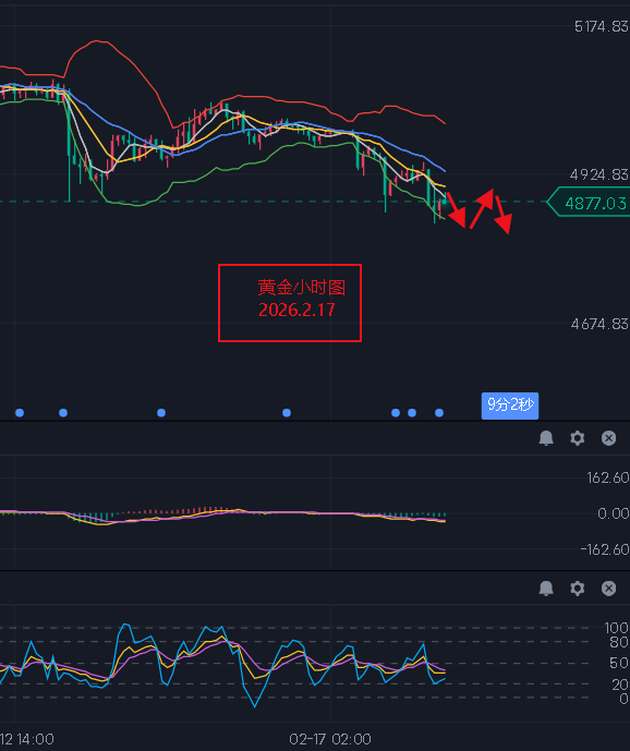现货黄金(伦敦金):技术面上来看昨日日线收了一根小阴柱,布林带缩口,价格即将选择新的方向,KDJ指标欲形成死叉,MACD快线处于慢线下方且绿色能量柱逐渐发散。目前来看大趋势仍旧偏上,中线阶段性下行。短线4小时图中来看,布林带开口,KDJ指标死叉放量,MACD快慢线相互缠绕。小时图中来看,布林带开口,KDJ指标欲形成金叉,MACD快线处于慢线下方且绿色能量柱逐渐发散。短线价格如期回调,目前短线继续关注回调情况,下方支撑关注4842/4794/4762一线,上方压力关注4906/4940/4968一线。